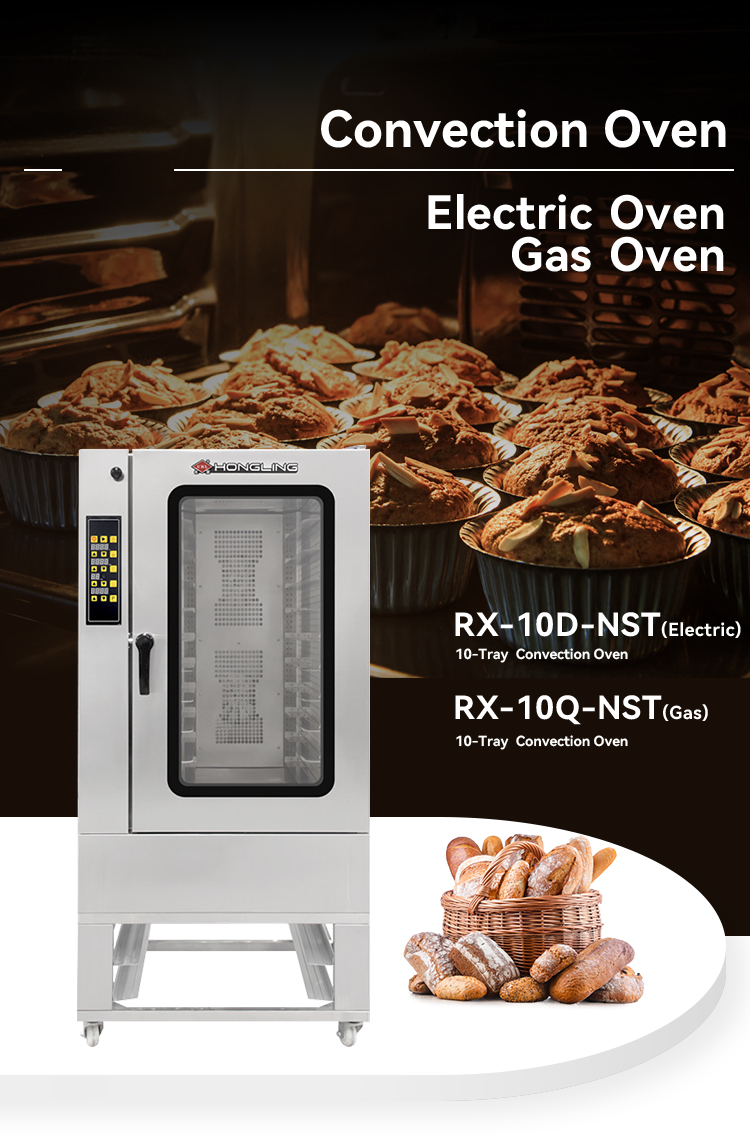 Gas LPGEl horno de convección eléctrico puede hornear varios tipos de masas, alimentos a base de harina, azúcar y carne, satisfaciendo las necesidades de horneado de diferentes alimentos y produciendo una variedad de deliciosos productos horneados.
